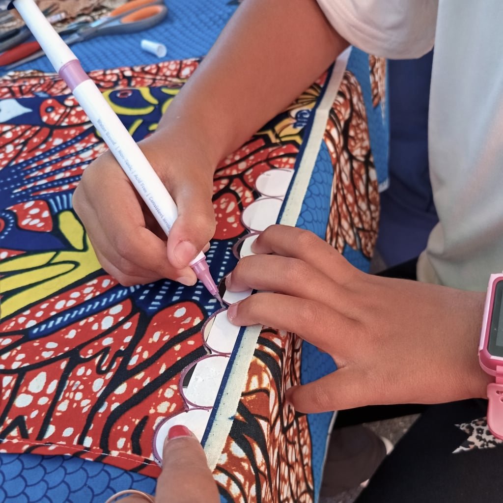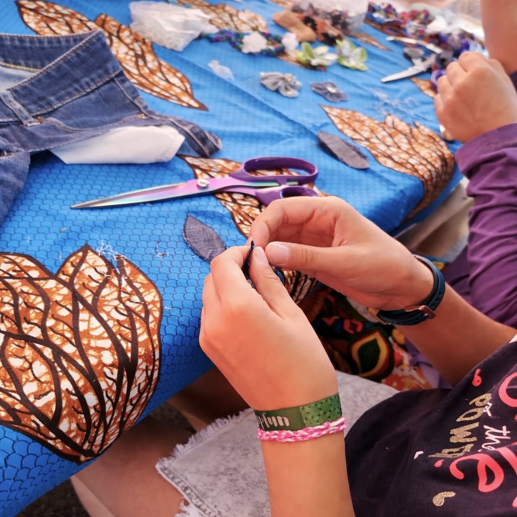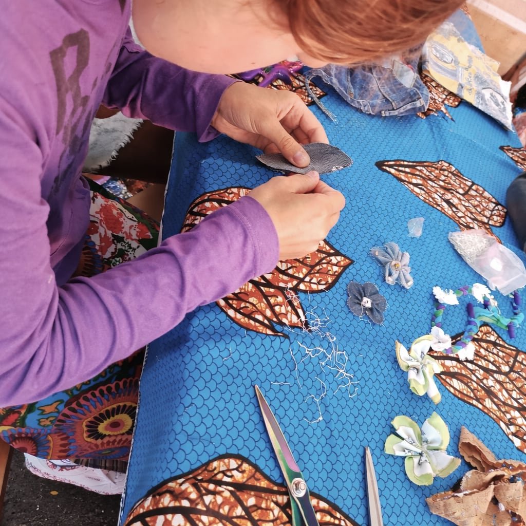 À partir de textiles existants, ils apprennent à transformer, imaginer et donner une seconde vie aux matières. Pas besoin de savoir coudre, ni d’avoir déjà fait un atelier créatif. Il suffit d’avoir envie de tester, de créer et de s’exprimer librement.